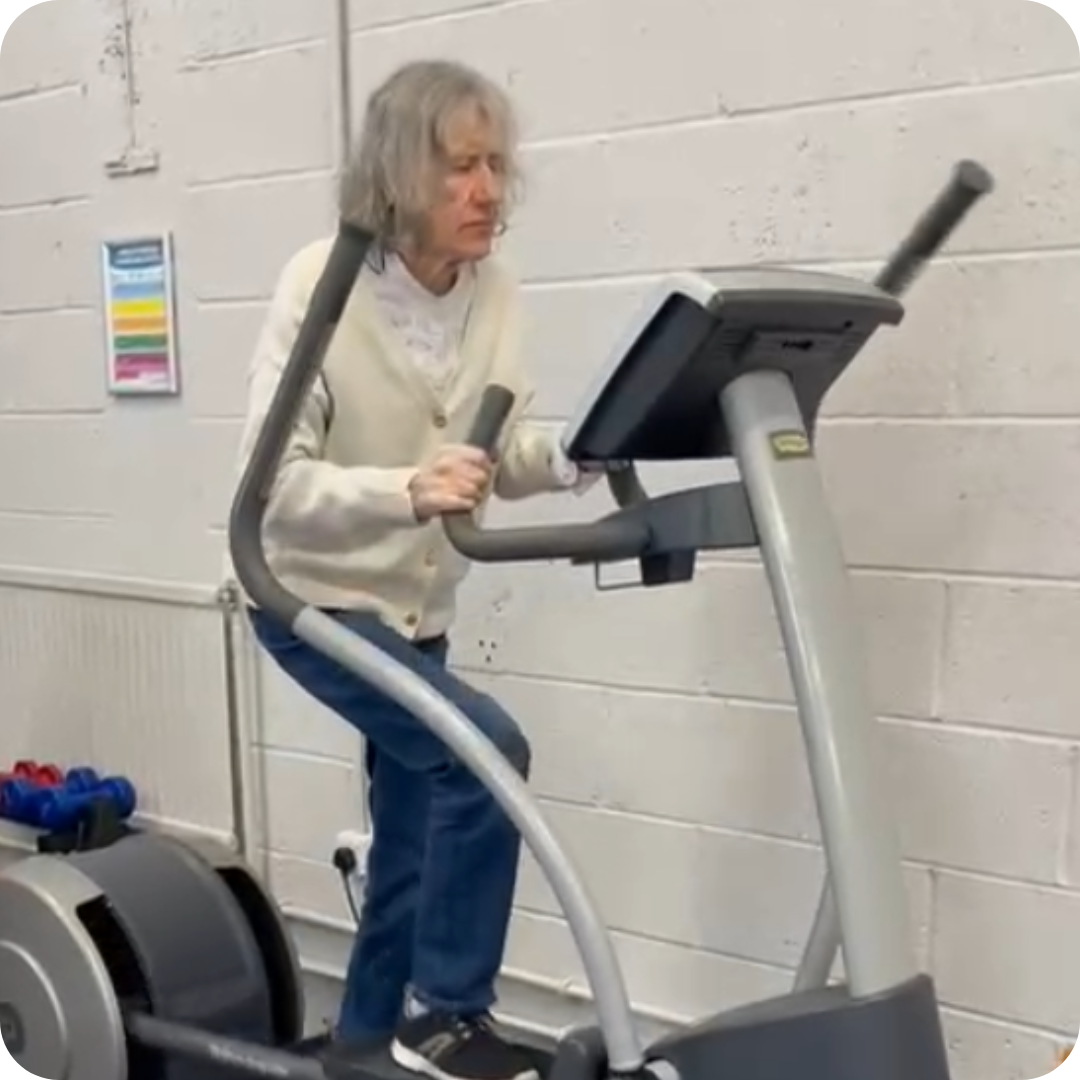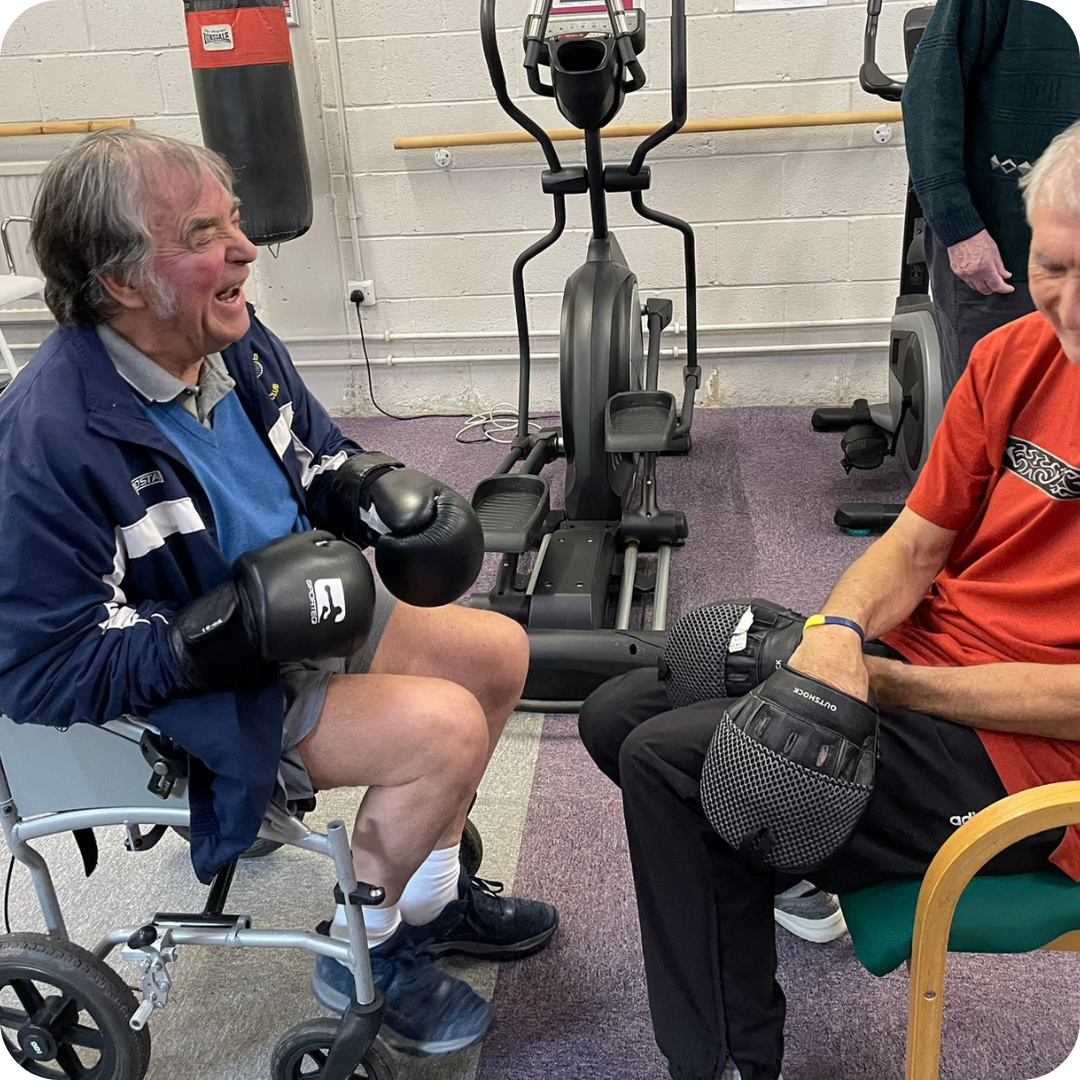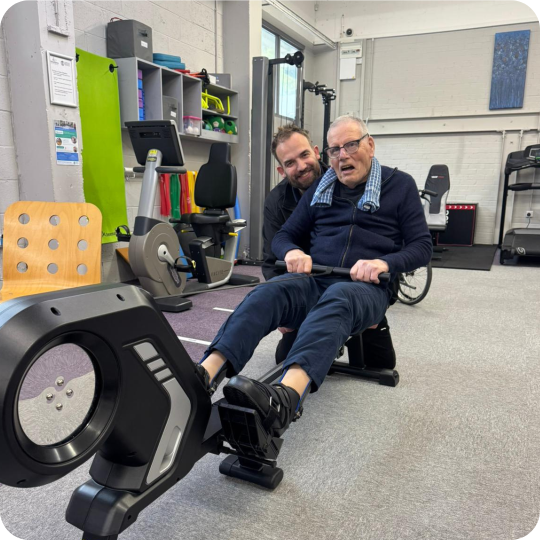 Tom attends two one-to-one sessions each week, designed to help him stay active, build strength, and maintain his independence. His commitment and positivity are an inspiration to everyone who visits the centre.
